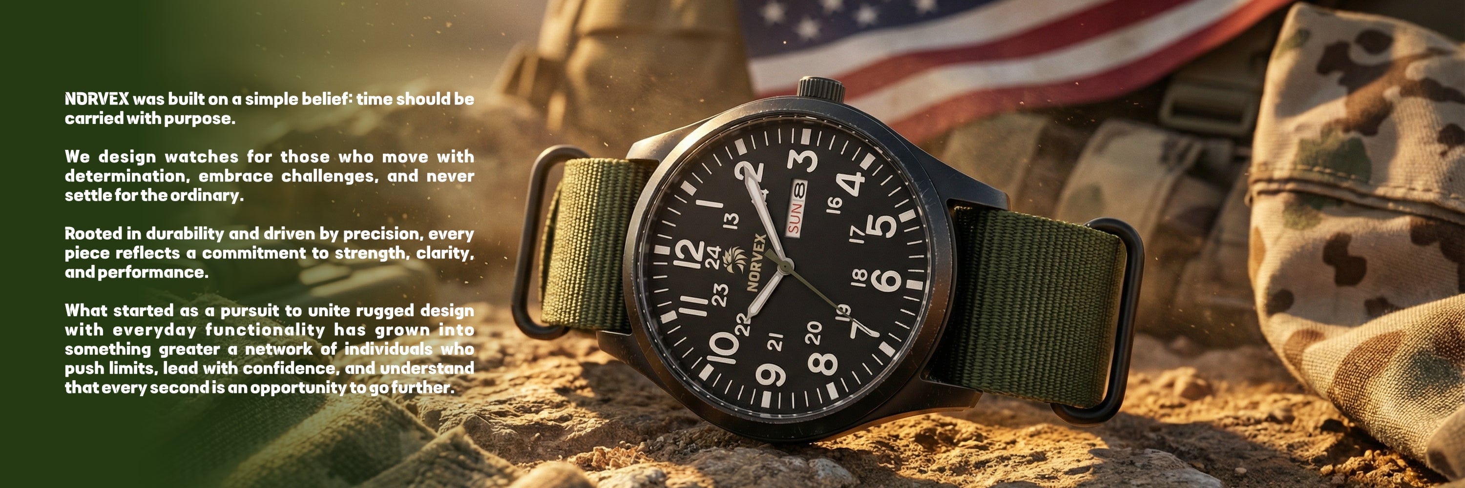 Norvex timepieces are designed in the USA in collaboration with tactical specialists and former military personnel to ensure real-world functionality. We source premium global components—including our precision Japanese movements—and assemble them in certified facilities under rigorous quality control standards.