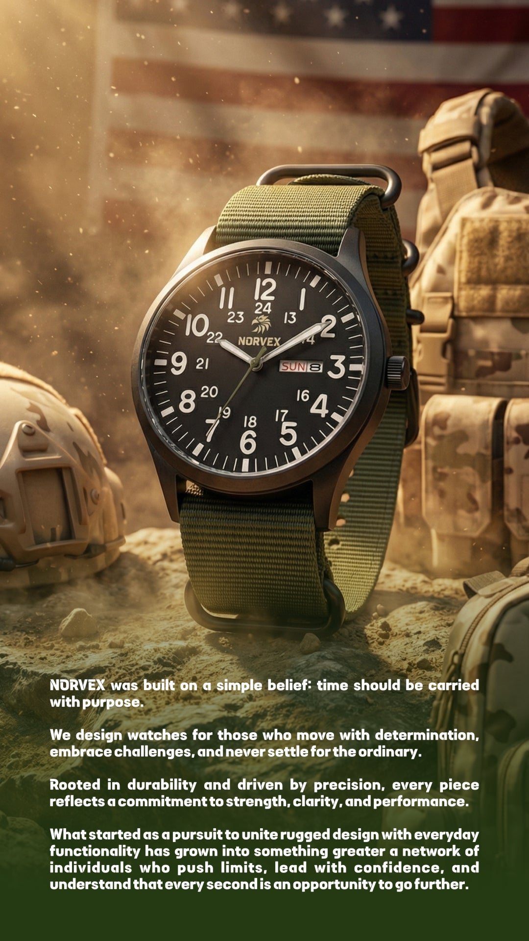 Every Norvex timepiece reflects his commitment to quality, durability, and bold design, built for those who demand more from every second.